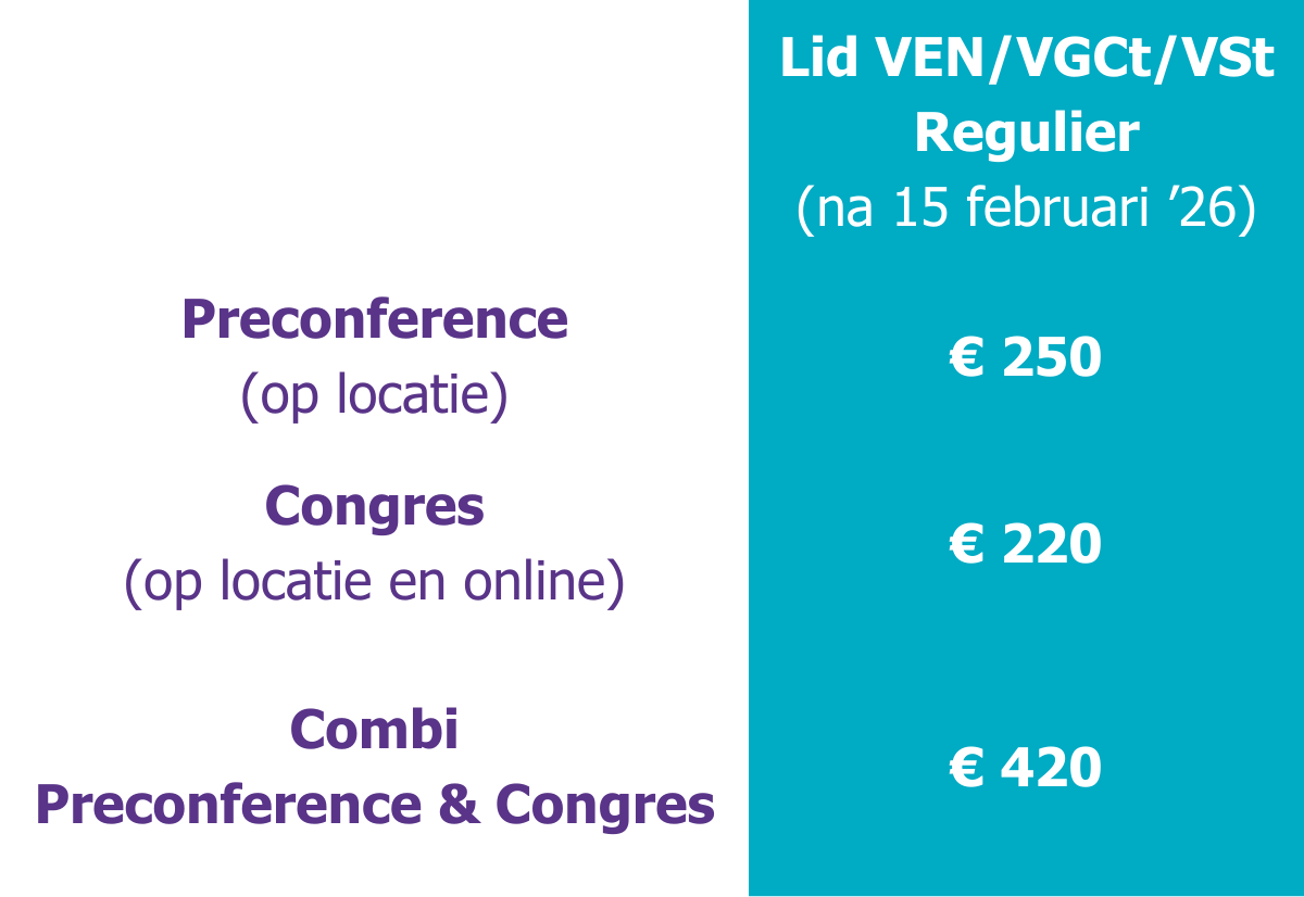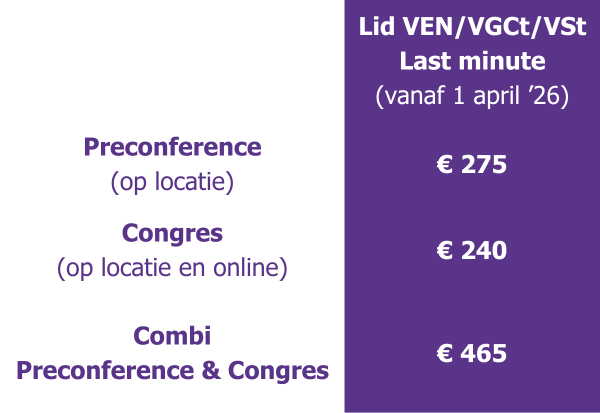 Klik hier voor de Algemene Voorwaarden evenementen die de VEN hanteert bij inschrijving voor het congres.